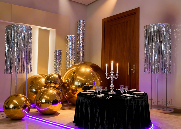 - Perayaan festival: seperti pesta Malam Tahun Baru dan festival musik, bola cermin besar (lebih dari 1,5m) digunakan sebagai instalasi landmark.
