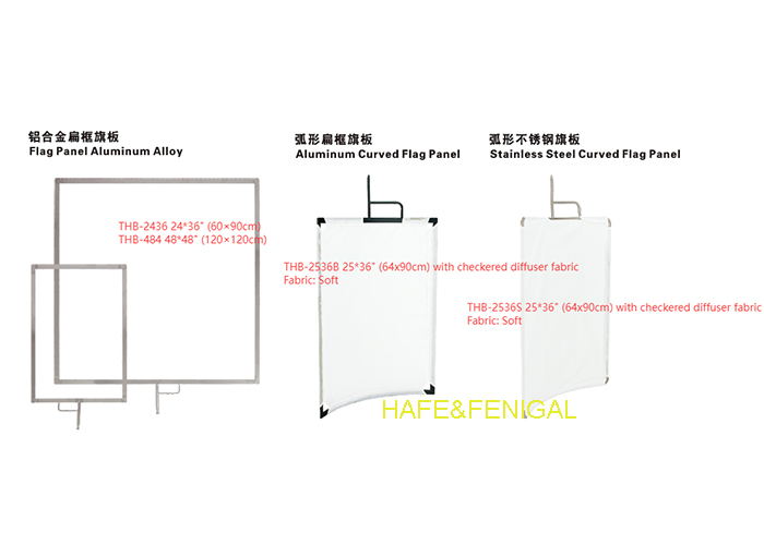 The THB/THA Series comprises a professional range of flag panels, light control boards, and background systems designed for film, photography, and studio lighting applications. These panels are available in multiple materials, sizes, and configurations to suit various lighting modification, diffusion, and background setup needs. They are widely used in studios, on location, and in video production environments for precise light shaping and scene composition.